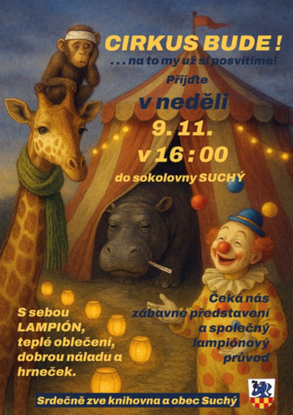 Cirkus bude Knihovna a obec Suchý Vás srdečně zve na představení a společný lampiónový průvod.